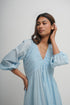 Indulge in elegance with our intricately crafted organic cotton dress, featuring exquisite pleated detailing on the neckline and back, enhanced by graceful tiers/gathers.