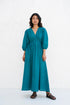 Wrap yourself in effortless comfort with our textured cotton midi dress, crafted from pure cotton for a soft, breathable, and relaxed fit. Designed with gentle gathers, a V-neckline, and an elastic empire waist, this dress offers a flattering silhouette while maintaining a loose, flowy cottagecore charm.