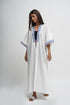 Step into pure comfort and style with our softest cotton robe, adorned with exquisite hand-block printed geometric border detailing, adding a touch of artisanal charm.