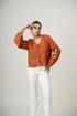 Embrace artisanal charm with our linen top, adorned with intricate hand embroidery and featuring voluminous balloon sleeves.
